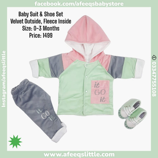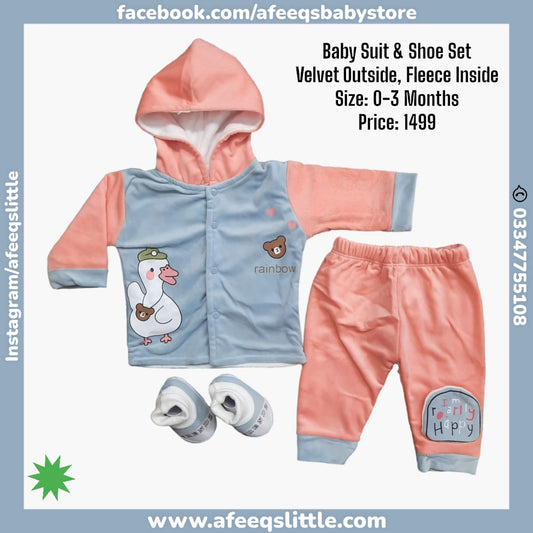 Velvet (Outside) Fleece (Inside) Hooded Suit With Shoe 0-3Months