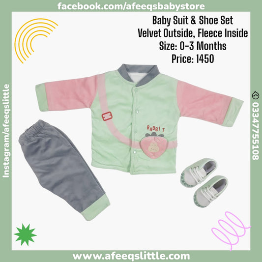 Rabbit Velvet (Outside) Fleece (Inside) Suit With Shoe 0-3Months